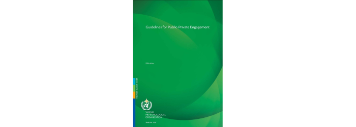 Guidelines for Public-private Engagement(2021 edition) in WMO official languages: Arabic, Chinese, English, French, Russian and Spanish. Resolution 11 (EC-72): Guidelines for Public-private Engagement (edition 2020) in Abridged Final Report of the Seventy-Second Session of Executive Council, 2020: Arabic, Chinese, English, French, Russian and Spanish. The Guidelines aim to inform and facilitate global, regional, and national actions by the WMO and its Members towards proactive engagement between the public, private and academic sectors, and all stakeholders, resulting in better service to their governments, economy, and citizens. The Guidelines outline and promote principles to maximize the benefits of an inclusive weather enterprise approach. | |