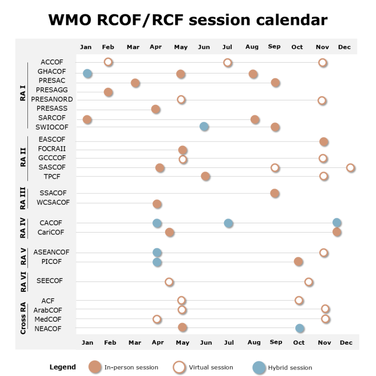 As of 2025, 24 RCOFs are operational across various regions of the world, with the following distribution across WMO RAs: