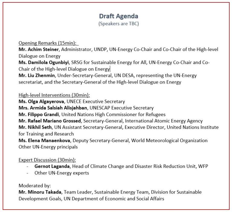 UN-Energy secretariat at UN DESA, IAEA, UNITAR, WMO, UNECE, UNESCAP