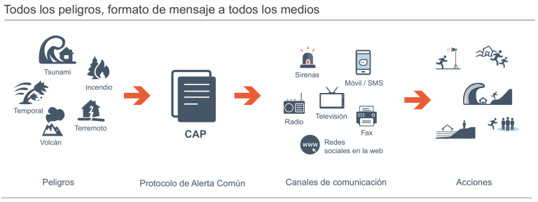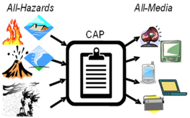 - el estándar internacional Protocolo de Alerta Común (CAP) para la comunicación de datos importantes de todo tipo de emergencias en todos los medios de comunicación disponibles2,