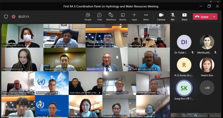 The 1st virtual meeting of the RA II Coordination Panel on Hydrology and Water Resources (RA II CP-Hydrology) was held virtually through videoconference on 29 September 2022. The meeting was chaired by Dr Hyo Seob Cho, Chair of RA II CP-Hydrology and co-chaired by Dr Sung Kim, Co-chair of RA II CP-Hydrology and Regional Hydrological Adviser for RA II.