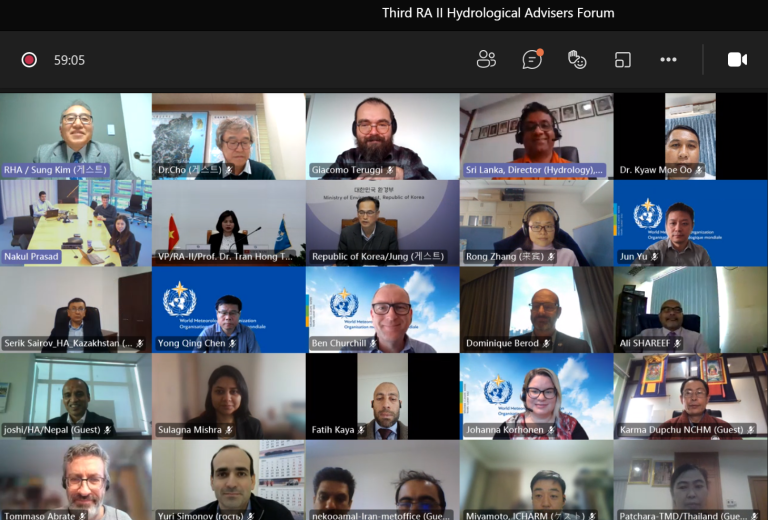 The 3rd Hydrological Advisers Forum for Region II (Asia) was held virtually through videoconference on 30 November 2021. Dr. Sung Kim, Regional Hydrological Adviser for RA II chaired the meeting which saw the participation of Hydrological Advisers and other experts from 17 Members in the region along with the staff from WMO.