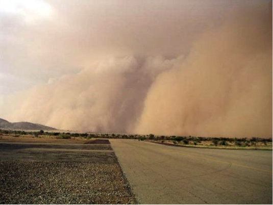 Tempête de poussière observée le 23 novembre 2007 à l’aéroport d’Abéché, Tchad (Photo: Darcy Burbank) |