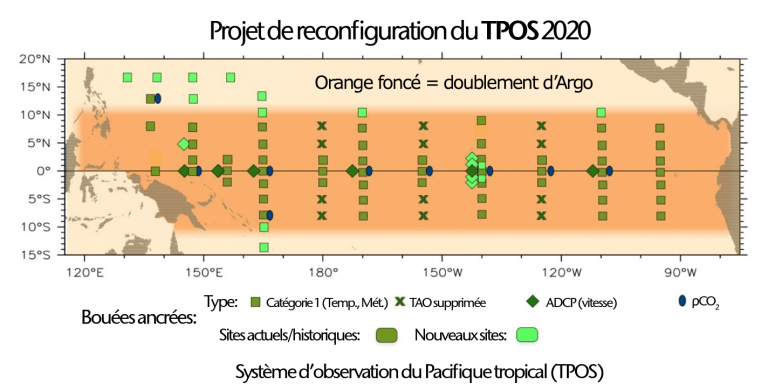 - Le Système d’observation du Pacifique tropical (TPOS) est mis à jour en tant que système d’observation de l’atmosphère et des océans conçu conjointement à l’appui des études sur les téléconnexions atmosphériques – c’est-à-dire les études sur la façon dont les anomalies climatiques sont liées les unes aux autres à de grandes distances – ainsi que des prévisions opérationnelles.