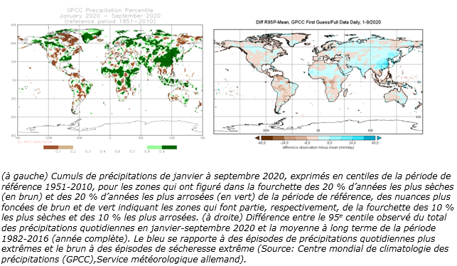 Dans l’intérieur de l’Amérique du Sud, une grave sécheresse a concerné de nombreuses régions en 2020, les zones les plus touchées étant le nord de l’Argentine, le Paraguay et les régions frontalières de l’ouest du Brésil. Les pertes agricoles ont été estimées à près de 3 milliards de dollars É.-U. rien qu’au Brésil. De nombreux incendies se sont déclarés dans toute la région, notamment dans les zones humides du Pantanal, dans l’ouest du Brésil.