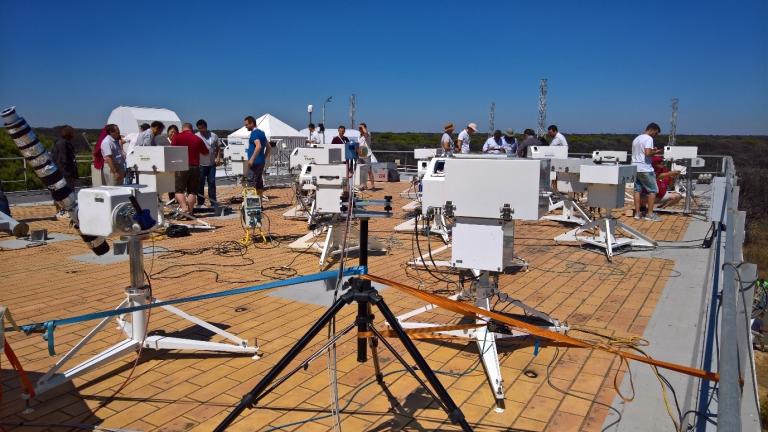 XII Regional intercomparison of the Brewer Calibration Center for Europe (RBCC-E) was held at El Arenosillo Atmospheric Sounding Station of the “Instituto Nacional de Técnica Aeroespacial” (INTA) during the period 29 May - 9 June 2017. 20 Brewer spectrometers, 15 operators and experts from 9 countries took part in XII Regional intercomparison campaign. This campaign is part of the EUBREWNET ES1207 COST Action and is organized in collaboration with the “Area of Instrumentation and Atmospheric Research Area” of INTA, with the support of the Global Atmosphere Watch (GAW) program of the World Meteorological Organization (WMO). This activity will be used as demonstration campaign of the calibration methodologies and error assessment developed by the EMRP ATMOZ project (Traceability of Atmospheric Total Ozone).The action focuses on the calibration of Brewer spectrophotometers from Europe and North Africa. The RBCC-E provided ozone and Aerosol Optical Depth (AOD) calibration against the RBCC-E reference, whereas the Quality Assurance of Spectral Ultraviolet Measurements (QASUME) International portable reference spectroradiometer of the Physikalisch-Meteorologisches Observatorium Davos / World Radiation Center (PMOD /WRC) provided a global UV reference spectrum for the ultraviolet measurements.