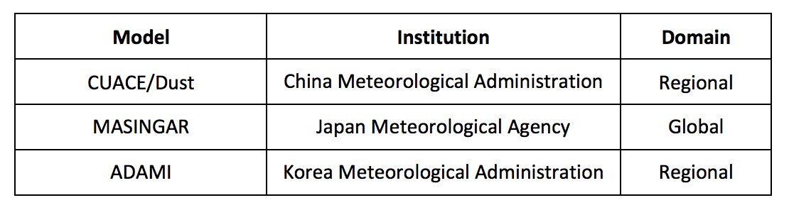 Models contributing to the SDS-WAS model joint visualization and evaluation for Asia ![]() |