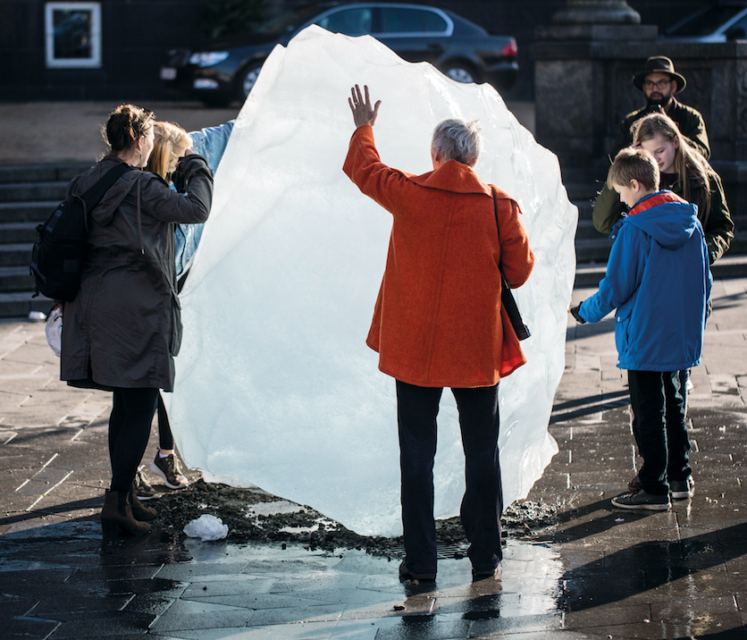 Shared experiences are a crucial element of Eliasson’s art. In 2014, he transplanted 12 large blocks of Greenland’s ice sheet to a square in Copenhagen, coinciding with the UN IPCC’s Fifth Assessment Report on Climate Change.  At the United Nations Framework Convention on Climate Change (UNFCCC) Conference in Paris the following year he reprised the work, placing 12 blocks of ice in the Place du Panthéon. On both occasions citizens from all walks of life were able to see, touch, and embrace the glacial ice that is disappearing around the globe.