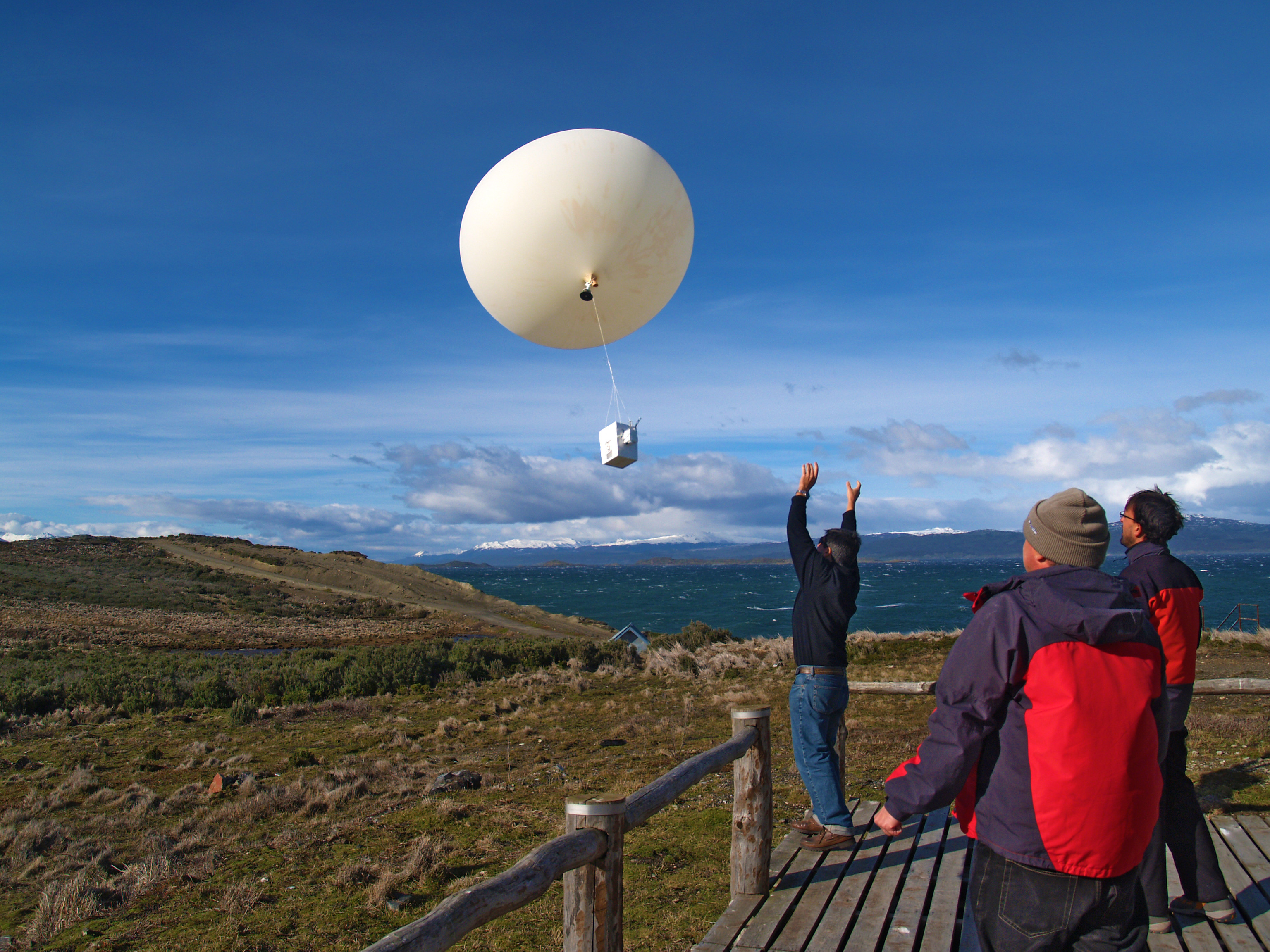 ![]() | Figure 2 — Launch of an ozonesonde at the GAW station in Ushuaia, Argentina. These observations, which are carried out by the Servicio Nacional de Meteorología of Argentina and are supported by the Spanish Meteorological Agency and Instituto Nacional de Técnica Aeroespacial, represent an important contribution to the monitoring of the Antarctic ozone hole. |