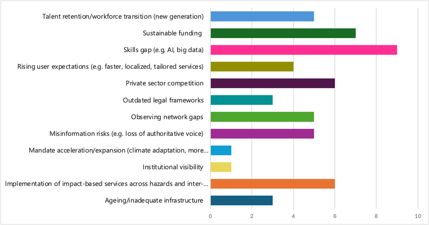 Participants identified various common issues facing National Meteorological and Hydrological Services (NMHSs):