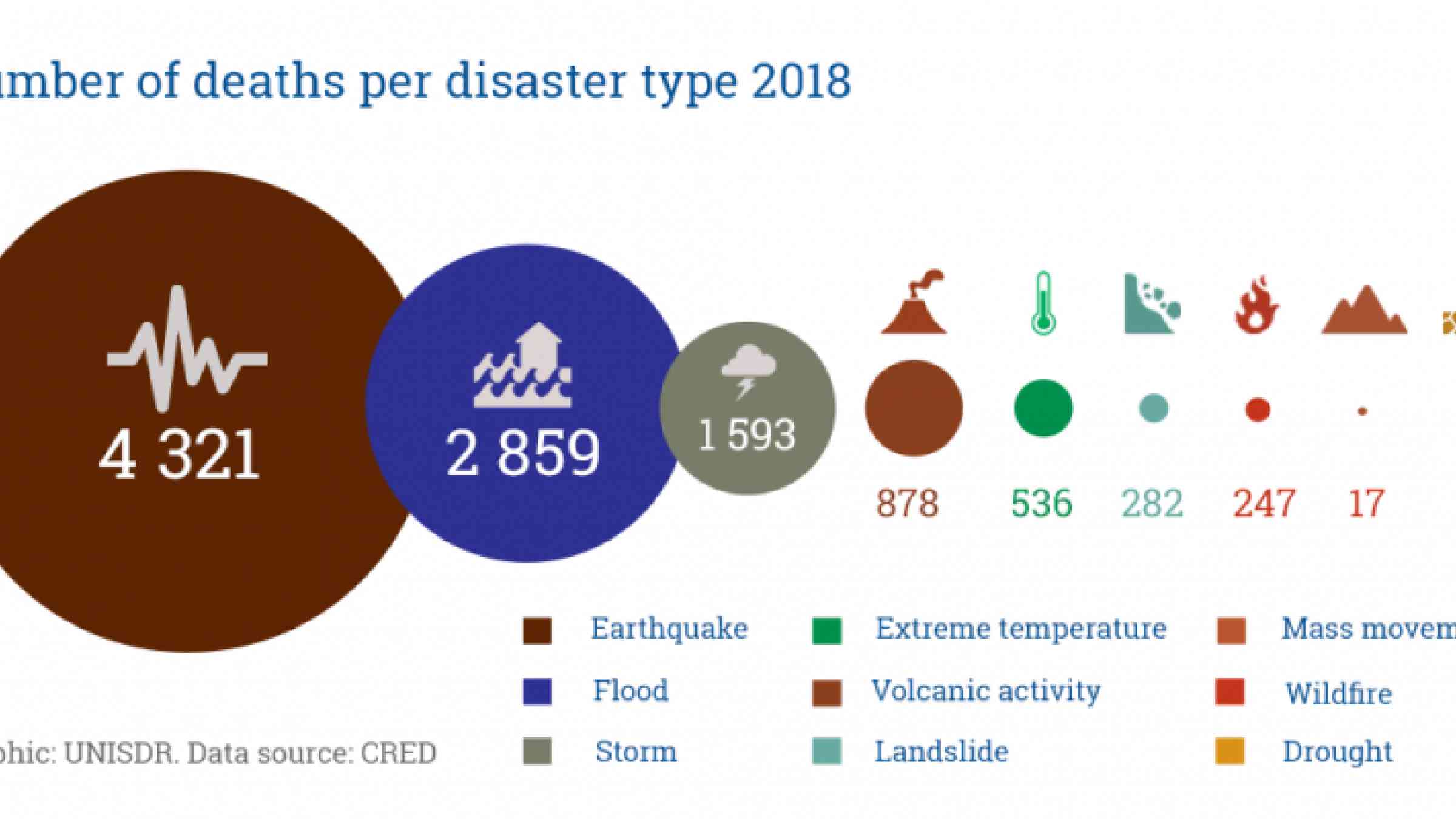 GENEVA, 24 January, 2019 – Earthquakes and tsunamis accounted for the majority of the 10,373 lives lost in disasters last year while extreme weather events accounted for most of 61.7 million people affected by natural hazards, according to analysis of 281 events recorded by the Centre for Research on the Epidemiology of Disasters (CRED) in its EM-DAT (International Disaster Database).