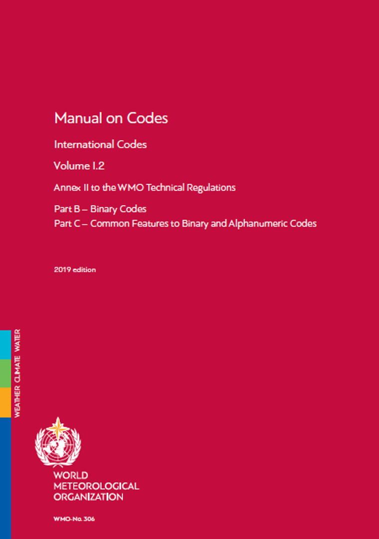 WMO has just published the 2019 edition of WMO-No. 306, Manual on Codes – International Codes, Volume I.2, Part B – Binary Codes and Part C – Common Features to Binary and Alphanumeric Codes.