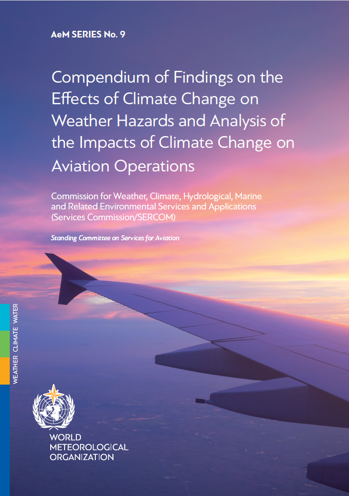 As a follow-up to the 2020 survey conducted by the Standing Committee on Services for Aviation (SC-AVI) on the impacts of climate change and variability on aviation and on the basis of its main results (available here), the SC-AVI Expert Team on Weather and Climate Science for Aviation Applications (ET-WCS) has consolidated into a Compendium the findings of the latest assessments of effects of climate change and variability on weather hazards and extreme events, and consequential impacts on aviation.