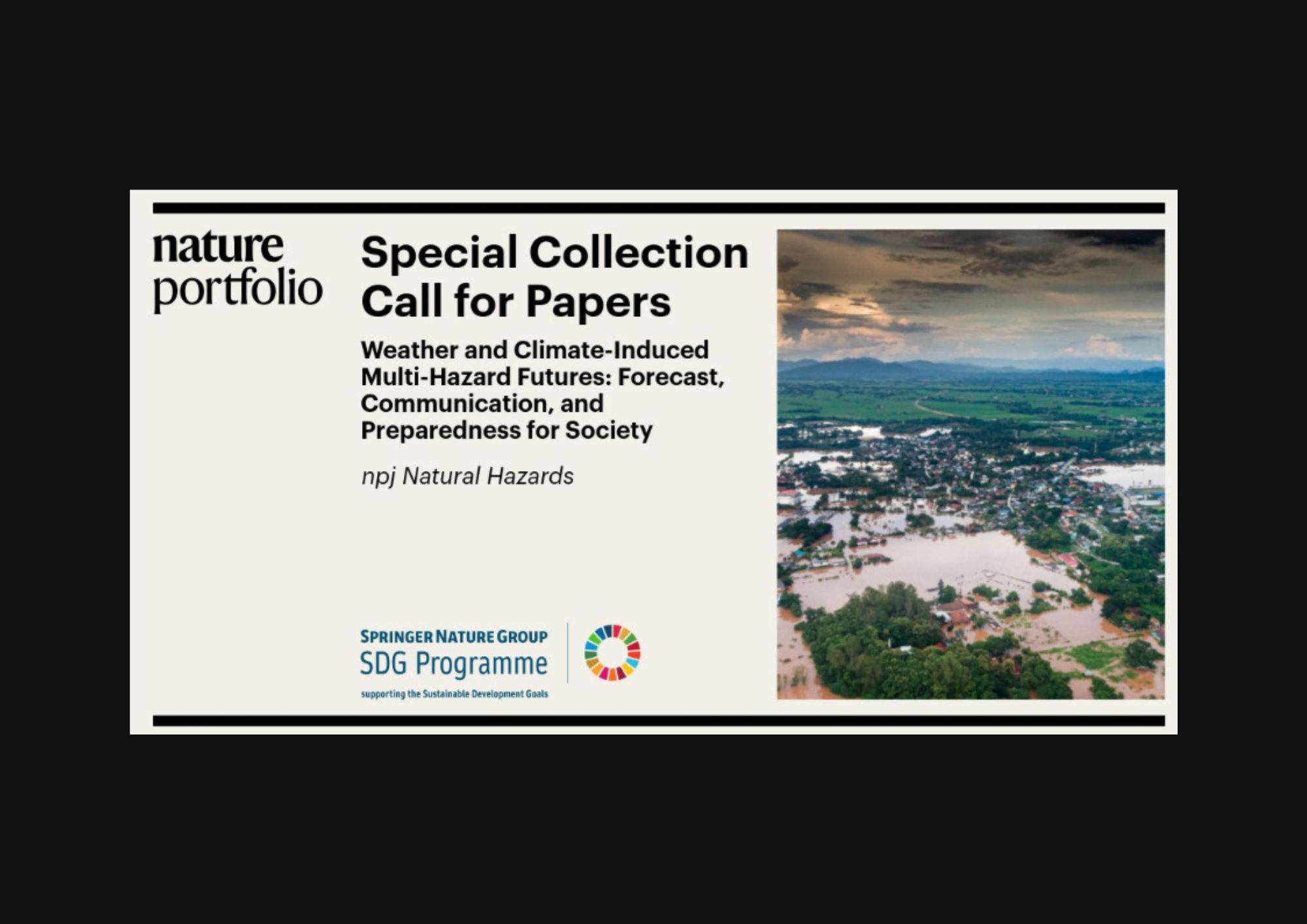 This Collection is a joint effort by npj Natural Hazards @ Nature Portfolio; the Societal and Economic Research Applications (SERA) Working Group and the Progressing EW4All Oriented to Partnerships and Local Engagement (PEOPLE) Project of the World Meteorological Organization World Weather Research Programme (WWRP); WCRP Regional Information for Society; the UNESCO- and WMO WWRP-endorsed Seamless Prediction and Services for Sustainable Natural and Built Environments (SEPRESS) Programme led by The Hong Kong University of Science and Technology; and the International Centre for Integrated Mountain Development (ICIMOD).
