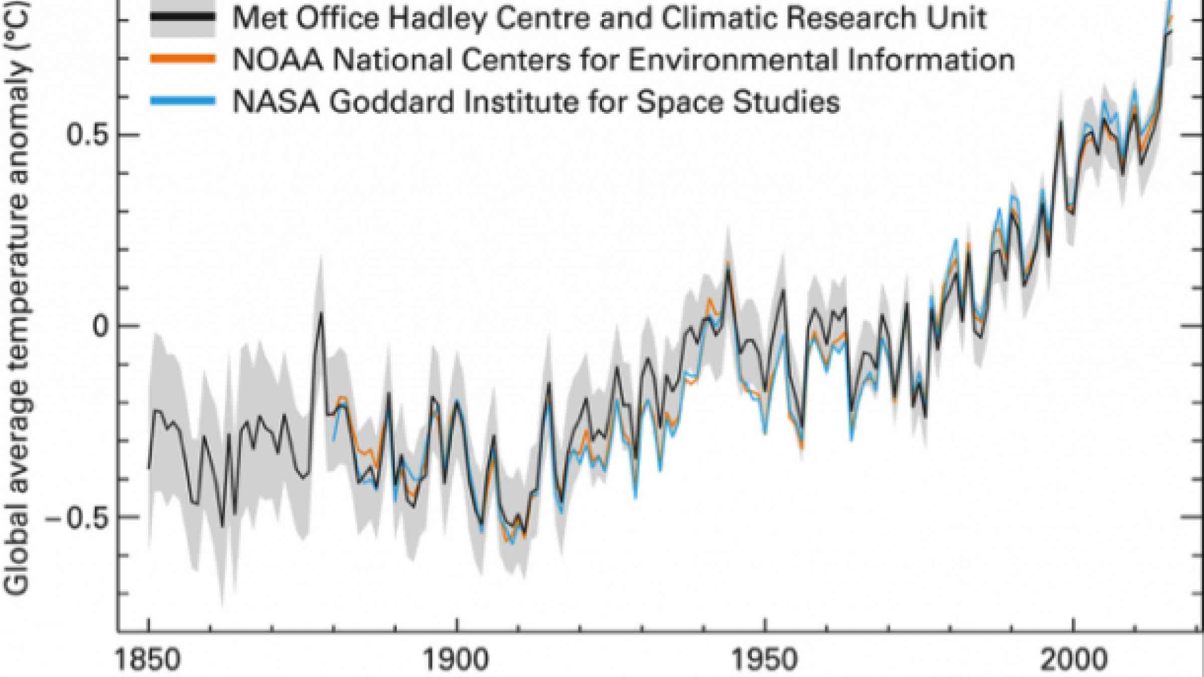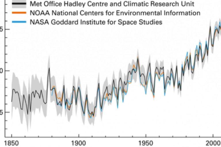 Global temperatures in this Statement are reported using the mean of the latest versions of the three datasets: GISTEMP, NOAAGlobalTemp and HadCRUT maintained respectively by the US National Oceanic and Atmospheric Administration (NOAA), the US National Air and Space Administration (NASA), and the Met Office Hadley Centre in collaboration with the University of East Anglia Climatic Research Unit, United Kingdom. The combined dataset extends back to 1880. In addition ERA-Interim reanalysis of the European Center for Medium Weather Forecasting was also used in the assessment.
