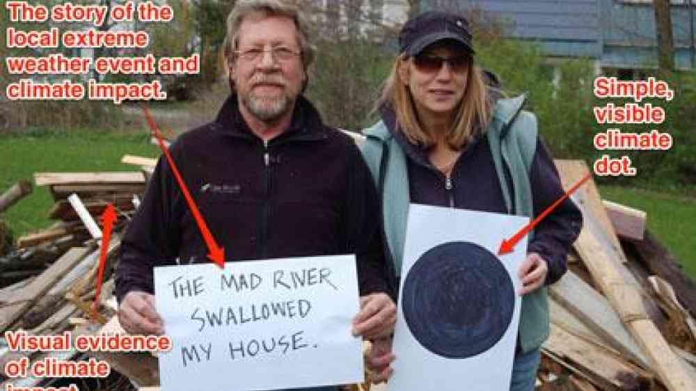 “We’ll share those images the world around, to put a human face on climate change - we’ll hold up a mirror to the planet and force people to come face to face with the ravages of climate change,” states Climatedots.org.