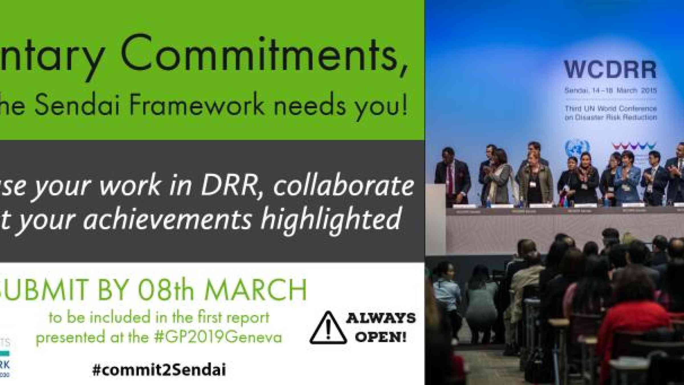 Organizations working to build resilience are submitting voluntary commitments in support of the Sendai Framework, the global roadmap for reducing disaster losses by 2030.