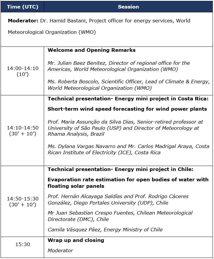 Technical Webinar on WMO Energy Demonstration Products in Chile and Costa Rica