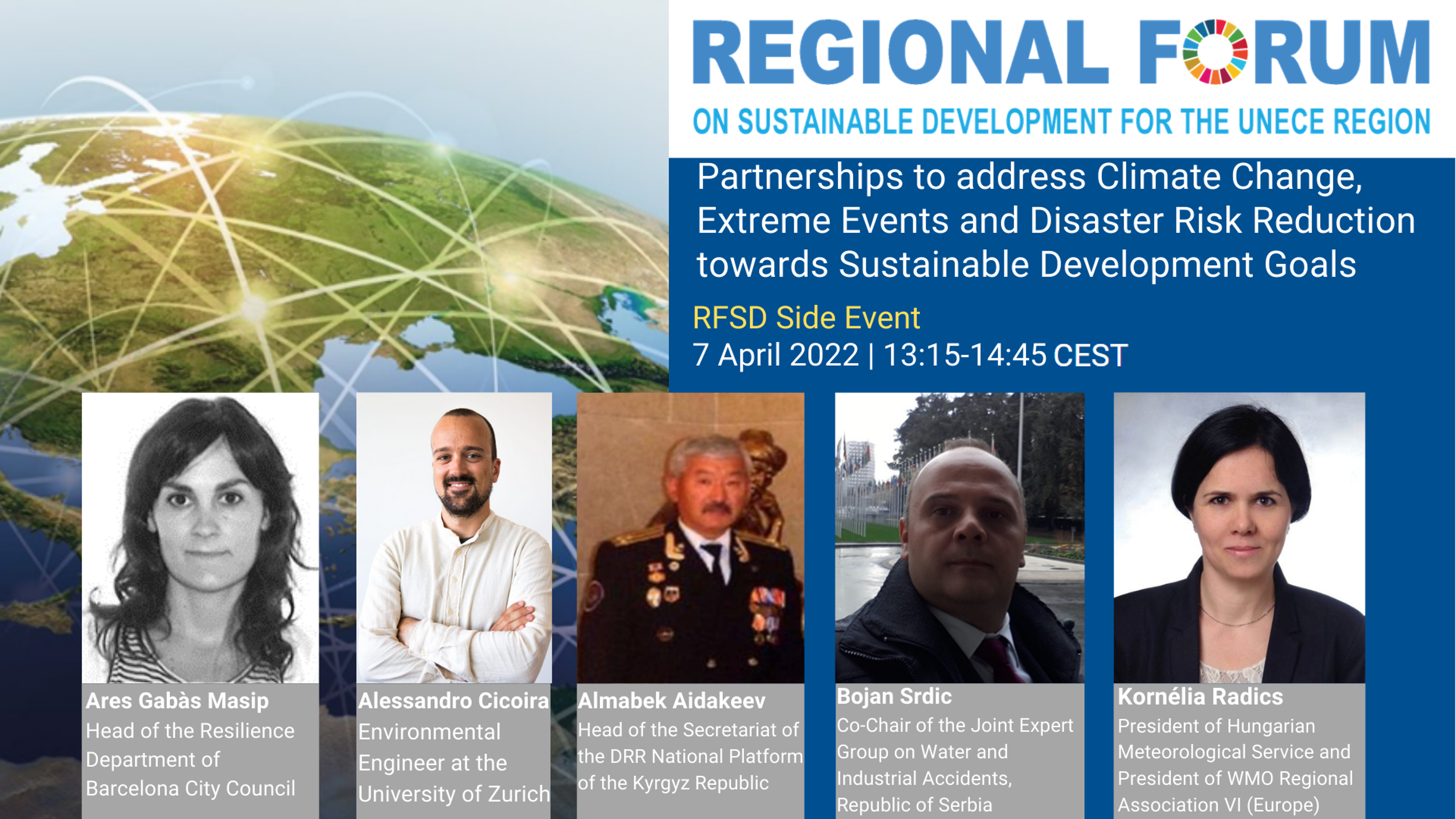On this occasion and taking the opportunity of the 2022 UN Economic Commission for Europe Regional Forum on Sustainable Development, WMO Regional Office for Europe, in co-leadership with UNDRR Regional Office for Europe and Central Assia and in collaboration with regional offices of UNICEF, UNDP, UNECE, UNESCO and other sister UN Agencies, organized a side event on Partnerships to address climate change, extreme events and disaster risk reduction towards SDGs.