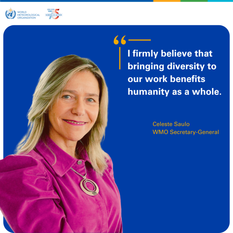“As the first female Secretary-General of the WMO, I am proud to be a role model to inspire the next generation of women and, especially girls. It gives me hope that a better world is ahead,” said Celeste Saulo.
