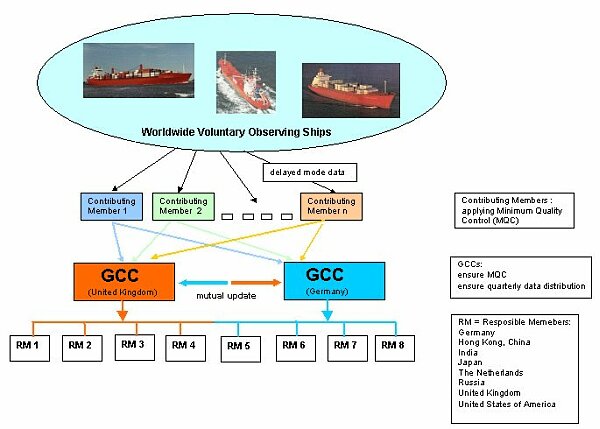 The MCSS, established in 1964 (see celebration of the MCSS 50th Aniversary at CLIMAR-4 here), has as its primary objective the international exchange, quality control and archival of delayed mode marine climatological data, in support of global climate studies and the provision of a range on marine climatological services. Eight countries are designated to process the data and regularly publish the climatological summaries. Two Global Data Collecting Centres (GCC) were established in 1993 in Germany and the United Kingdom to facilitate and enhance the flow and quality control of the data. All data are eventually archived in the appropriate World Data Centres, such as the National Climatic Data Center (NCDC).
