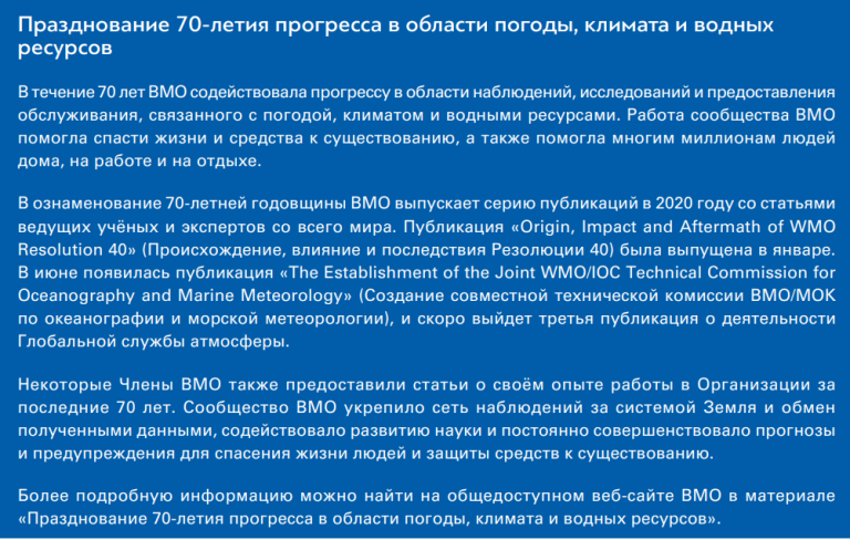 В этой статье рассматривается история ММО и ВМО, чтобы пролить свет на факты их возникновения и помочь нам лучше понять характер нынешнего 70-летнего юбилея и грядущей 150-летней годовщины ММО/ВМО в 2023 году.